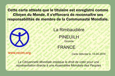 La carte de Citoyen du Monde est