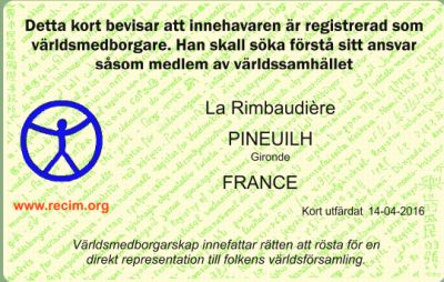 Till Dig som önskar vara registrerad VÄRLDSMEDBORGARE För att få ett personligt